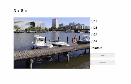 Kaiken kertojasiPelissä tehdään kertotauluharjoituksia. Siinä on sata kysymystä kertotauluista. Kaikkiin kysymyksiin on neljä vastausvaihtoehtoa. Pelin nimi on Kaiken kertojasi. |